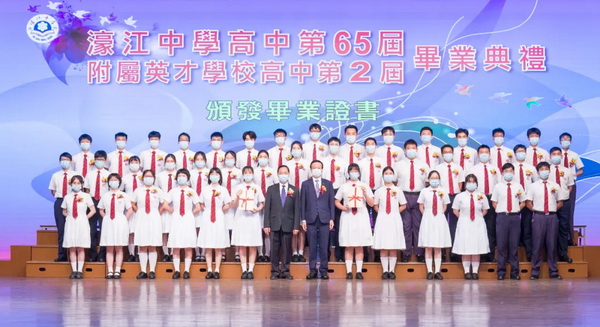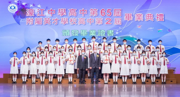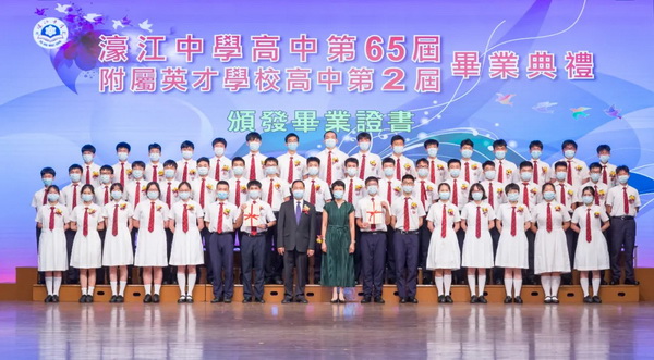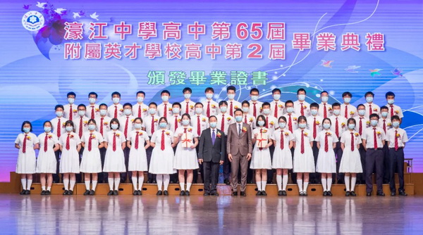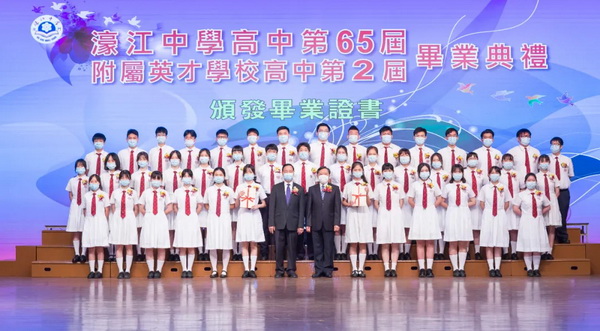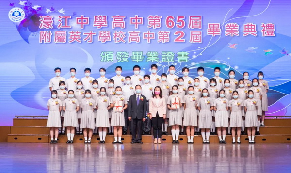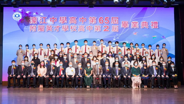 濠江中學高中第六十五屆、濠江中學附屬英才學校高中第二屆畢業典禮於六月十九日上午十一時在校本部禮堂隆重舉行,場面溫馨感人。
