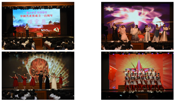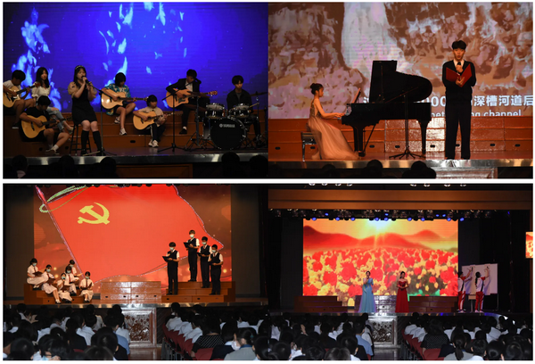 為慶祝中國共產黨成立100周年,濠江中學於7月2日下午在正校禮堂舉行了一場精彩的文藝匯演,師生們以歌舞、樂器演奏、朗誦、話劇等形式,歌頌中國共產黨波瀾壯闊的百年光輝歷程,表達了濠江師生對偉大祖國的美好祝願和對中國共產黨的敬佩讚賞之情。尤端陽校長,陳步倩副校長,劉智丹、周明助理校長,以及多位行政出席,與師生共同慶祝這一偉大時刻。