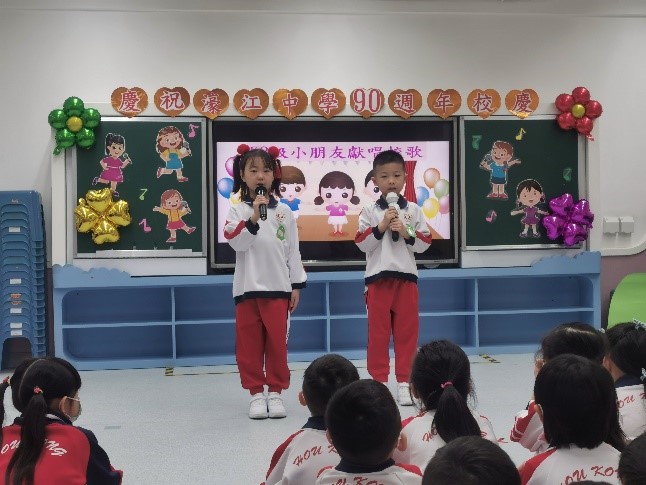 為準備本次校歌表演,老師們利用日常活動時間為小朋友們講解歌詞含義,講述學校歷史。蒙童雖小,卻在日日的歌唱中感受濠江中學的底蘊,將學校歷史、愛國情懷融入到記憶中,將濠江人的精神深入到內心深處。
