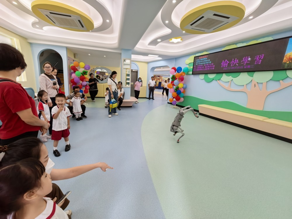 今天,身穿整齊校服的可愛學童在家長們不捨而期待的目光中,邁著稚嫩的步伐步入裝飾一新的校園。校園內外處處洋溢著濃厚的愛國與科技氛圍,教師帶著幼兒與機械狗進行近距離的接觸和認識,讓幼兒感受到科技在不斷創新發展。此外,老師更以生動活潑的方式為幼兒講解國家象徵的深刻內涵,在幼兒清澈的眼眸中播下愛國的種子。