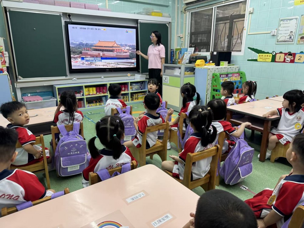 濠江中學附屬幼稚園於今日迎來新學年開學日,K1年級新生在莊重而溫馨的氛圍中開啟了人生重要的學習旅程。學校匠心獨運,將愛國主義教育巧妙融入開學第一課,特別組織全校師生共同觀看國家閱兵儀式直播,讓幼小的心靈在震撼的視聽盛宴中感受國家的強盛與榮光。