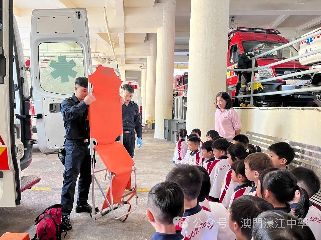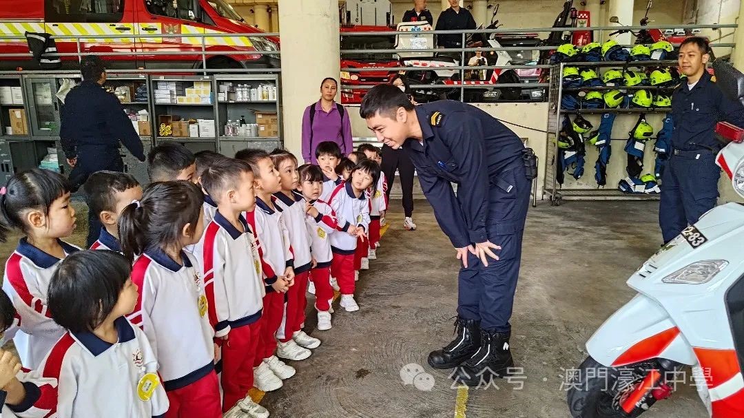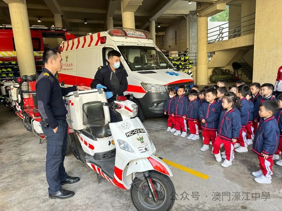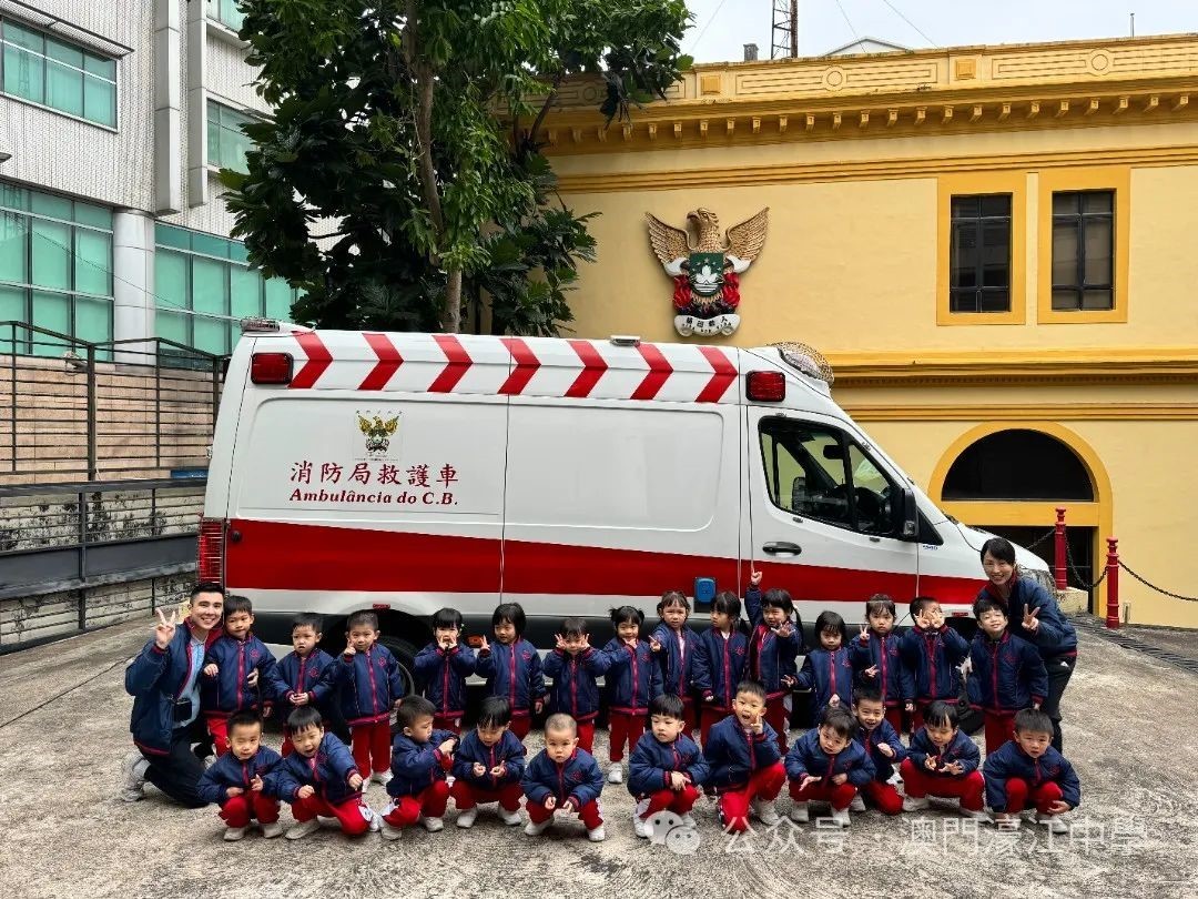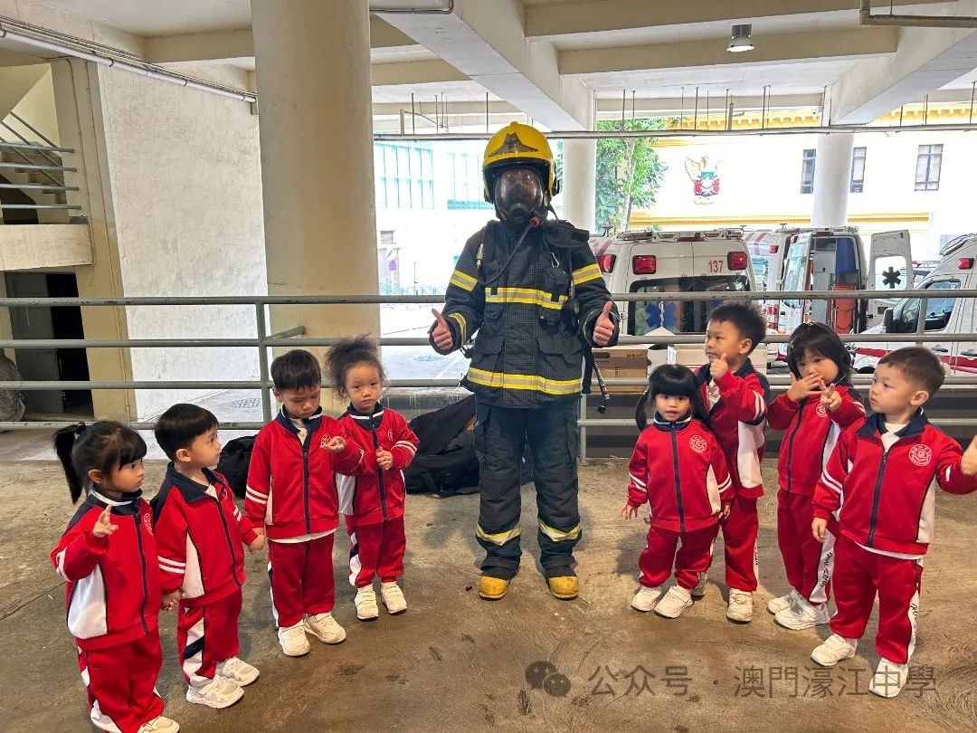 濠江中學附屬幼稚園K1級幼兒近日參觀了位於鏡湖馬路的消防局,這次活動讓他們近距離接觸消防員的工作和裝備,深入了解火災防護知識,並體驗了消防員的英勇精神。