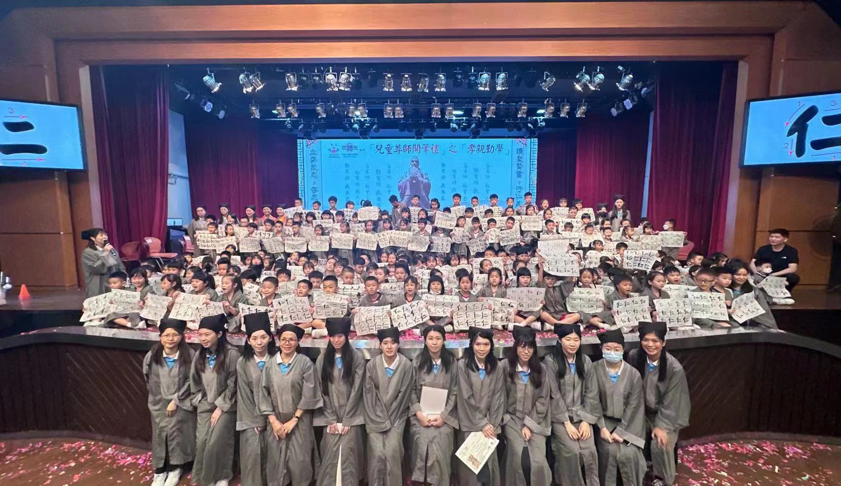 濠小一二年級244名學生參加由東井圓佛會、中國澳門德教會濟修閣合辦的2023全城德育計劃 兒童尊師開筆禮之「孝親勤學」活動