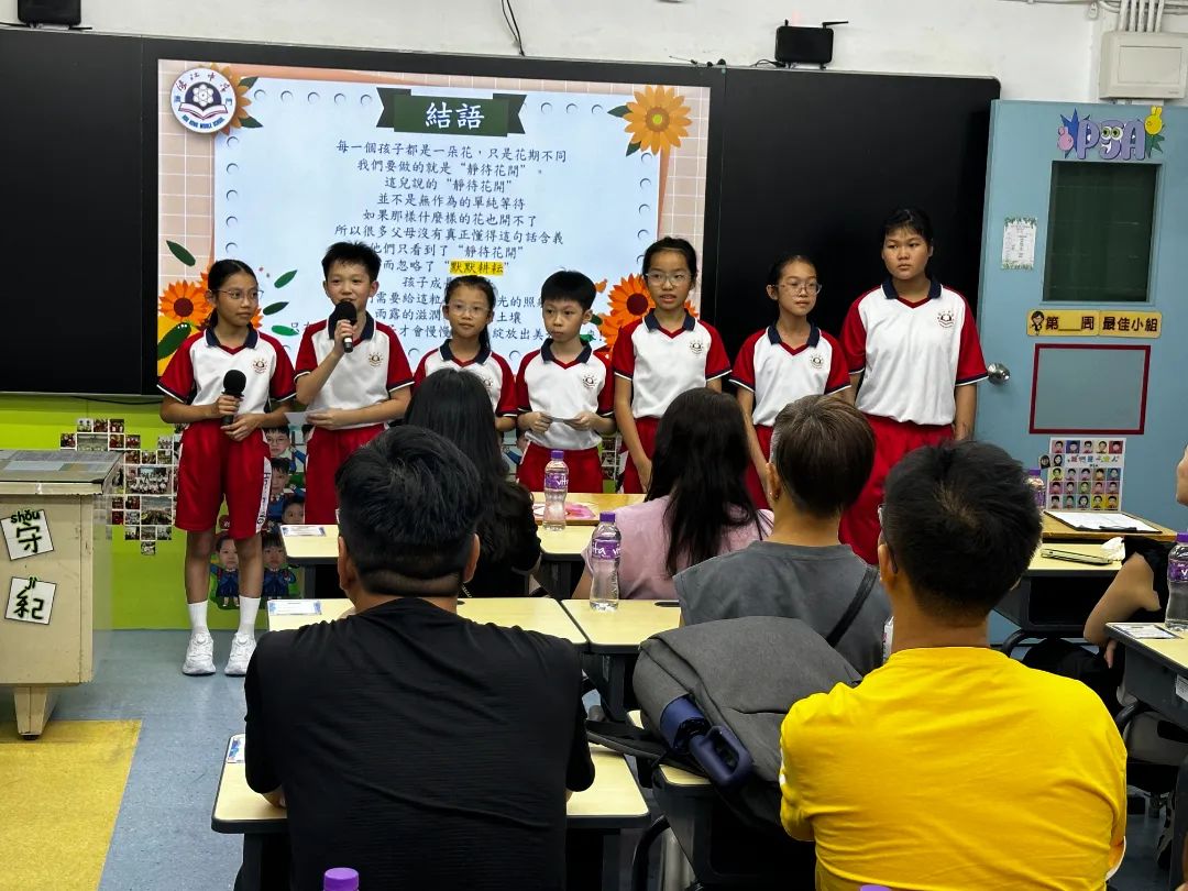 本次座談會形式新穎,分別由各班的小主持在課室為家長們作介紹和分享。分享內容包括本學年學校目標和發展方向、級組概況、班級情況、同學們在“自主管理、小組學習”學習方面的匯報、上學年學校舉辦的各項活動、喜訊分享、家長小錦囊,在家長教師互相交流環節上,班主任們積極與家長們交流對話,希望通過本次家長座談會,讓家長們更加了解同學們的進步,感受老師的關愛。期許在新的學年裏,能與各位家長攜手共進,共同努力,為同學的成長加油助力。