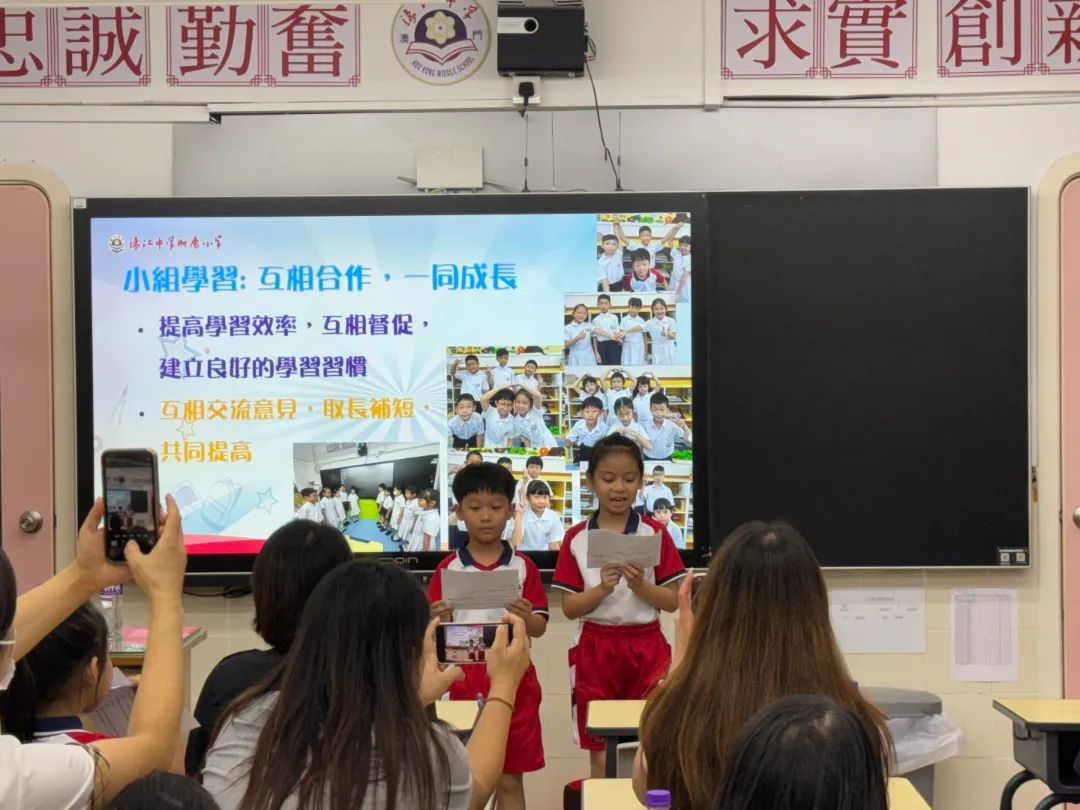 首先由陳步倩副校長介紹校務情況,分享濠江中學上學年高三國內升高校的佳績、學校重點工作的發展及對新學年的展望與鼓勵。優秀學生代表向家長們分享上學年同學們在“自主管理、小組學習”方面的點滴,再由英文科組演示小組合作的上課情況,展現學習成果等。