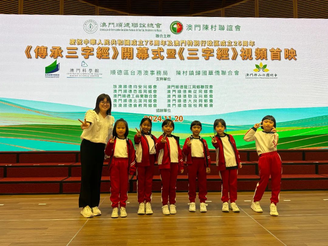 為慶祝中華人民共和國成立七十五周年、澳門特別行政區成立二十五周年,澳門順德聯誼總會與澳門陳村聯誼會聯合主辦《傳承三字經》開幕儀式視頻首映暨《三字經》圖片展覽,濠江中學附屬小學於11月20日,由語文科組帶領了六位二年級同學到科學館了解和學習。
