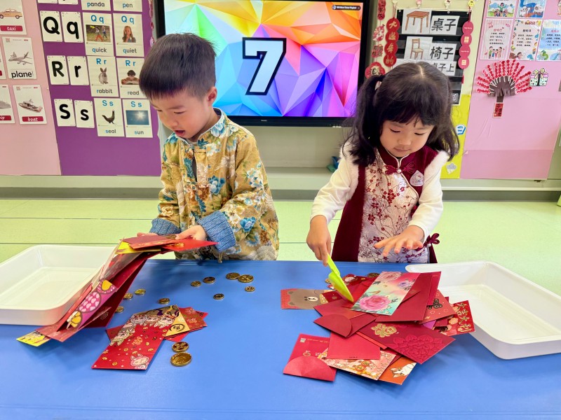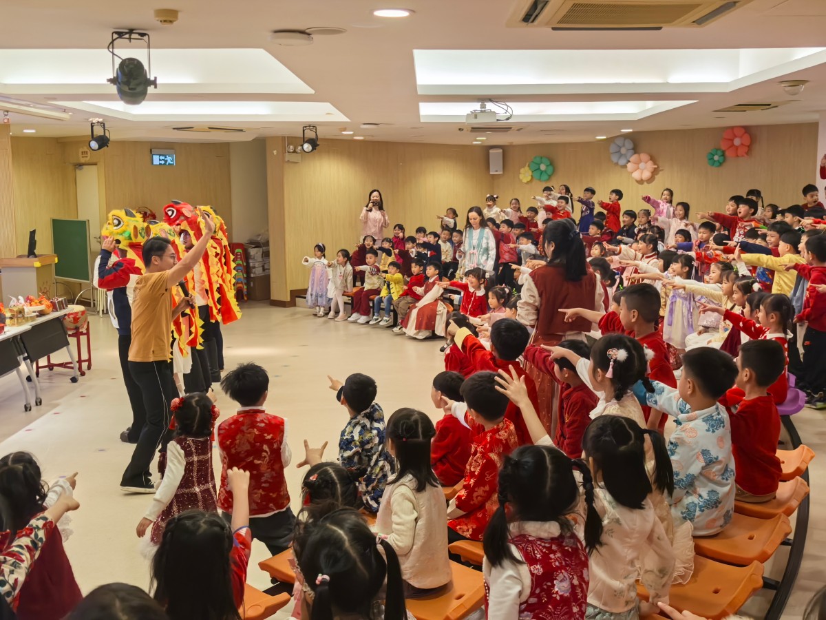 為延續新春歡樂,各班級紛紛舉辦新年慶祝活動。K1的小朋友在課室裡玩各種趣味遊戲,並親手製作馬年美勞作品;K2級舉辦「串門」活動,孩子們穿上華麗的傳統服飾,穿梭各班挑戰「百發百中」、「新年送福」等攤位;K3級則在小禮堂舉行慶祝活動,透過舞獅、對聯遊戲及「傳福袋」接力等遊戲,讓孩子們在歡樂中認識傳統文化。