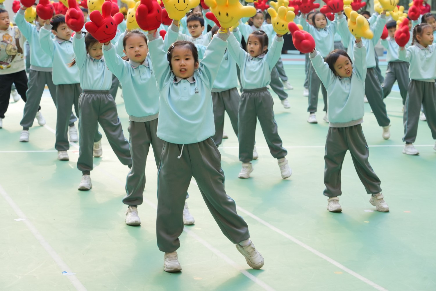 開幕表演環節,小一年級帶來《“鼓”動節拍、“舞”動未來》的活力表演,小二年級獻上可愛的《小跳娃》演出。兩個年級還分別展示了韻律操《孩子的天空》與《無比閃耀》,靈動又富有動感的舞姿展現出孩子的童真與朝氣。