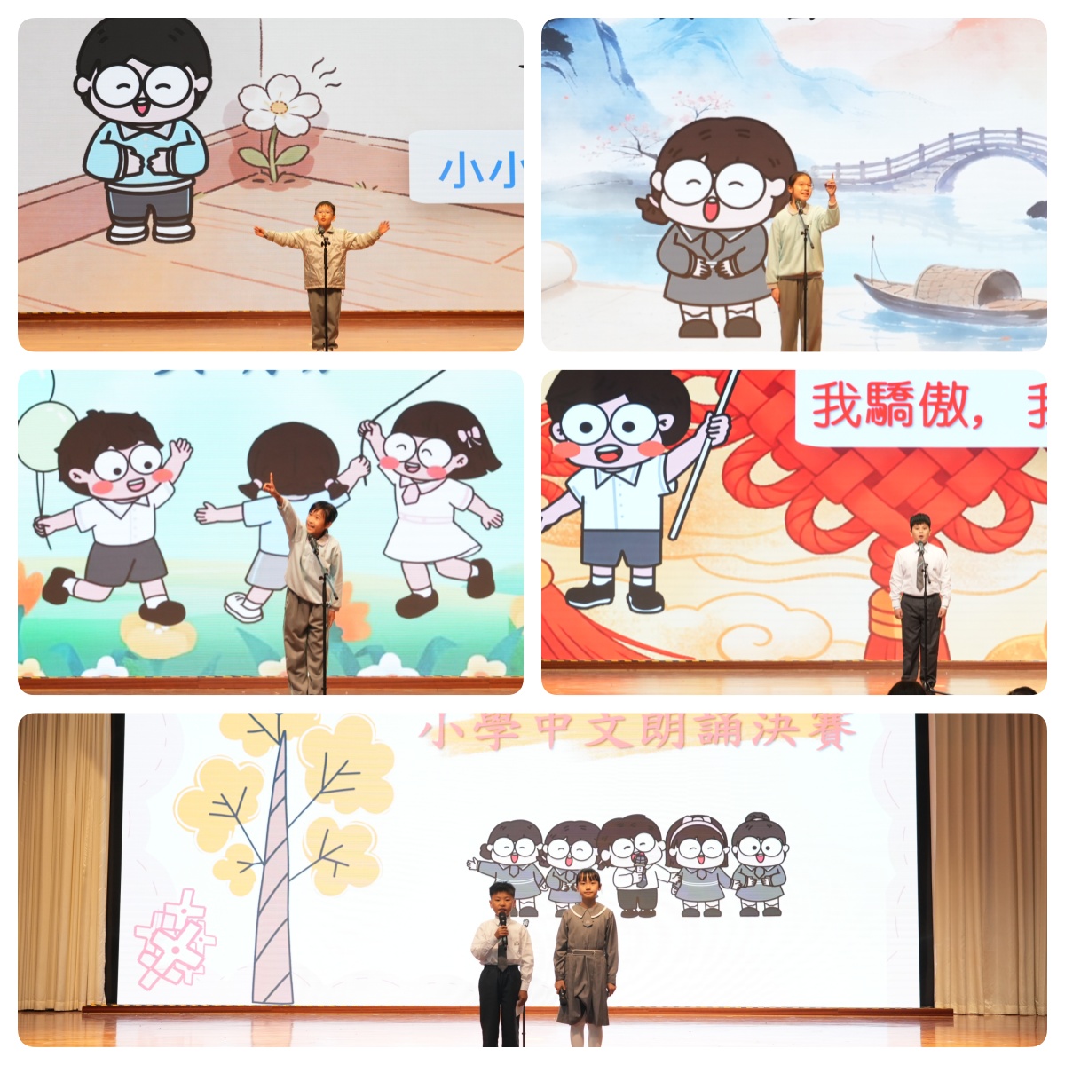 比賽前期,各班級積極回應,全體同學踴躍參與初賽角逐。經過班級推薦與年級復賽的層層篩選,共有20位中文選手和12位英文選手晉級校級決賽。近日,中文與英文決賽專場先後上演,小學部全體師生一齊觀賽,共同見證這場語言盛宴。