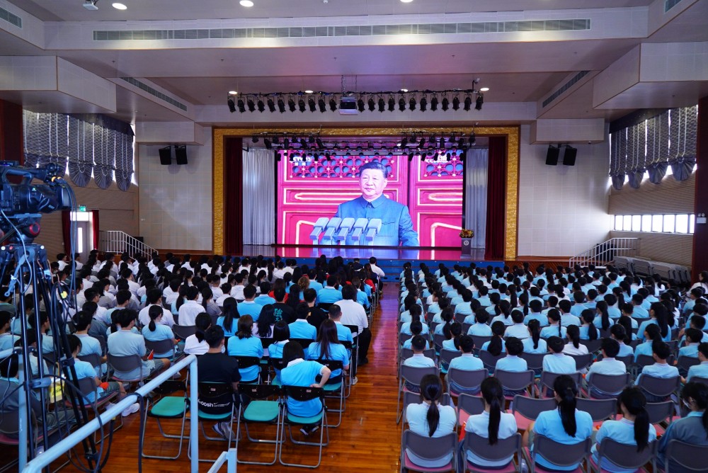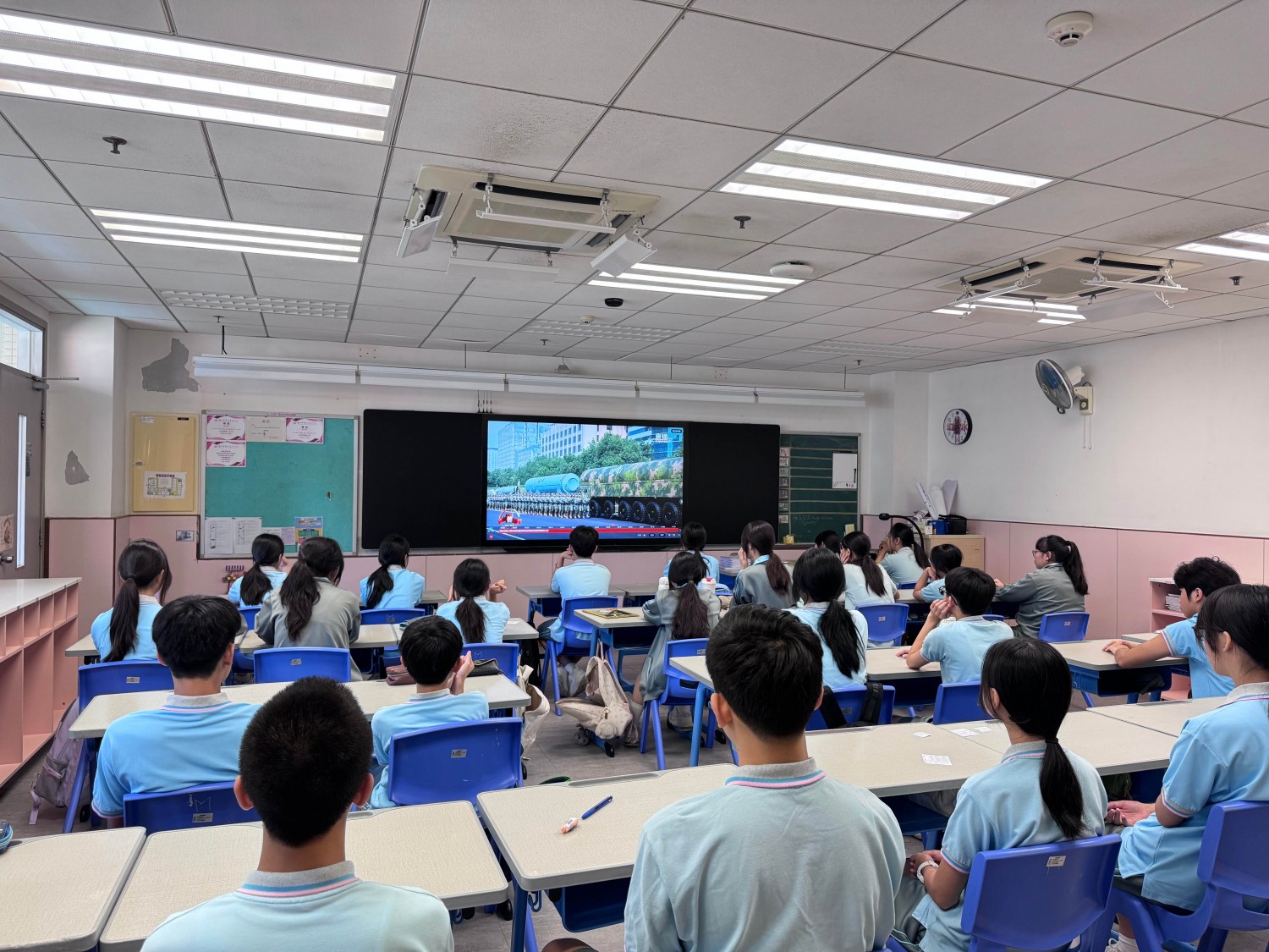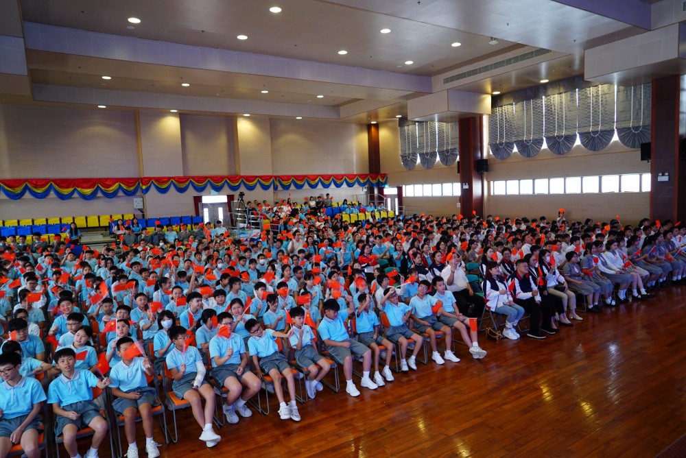 9月3日,澳門濠江中學附屬英才學校中小幼全體師生沉浸在莊重而熱烈的氛圍中,師生滿懷期待,準時通過直播觀看了“紀念中國人民抗日戰爭暨世界反法西斯戰爭勝利80周年大會”,校園裡激蕩著振奮人心的歡呼。