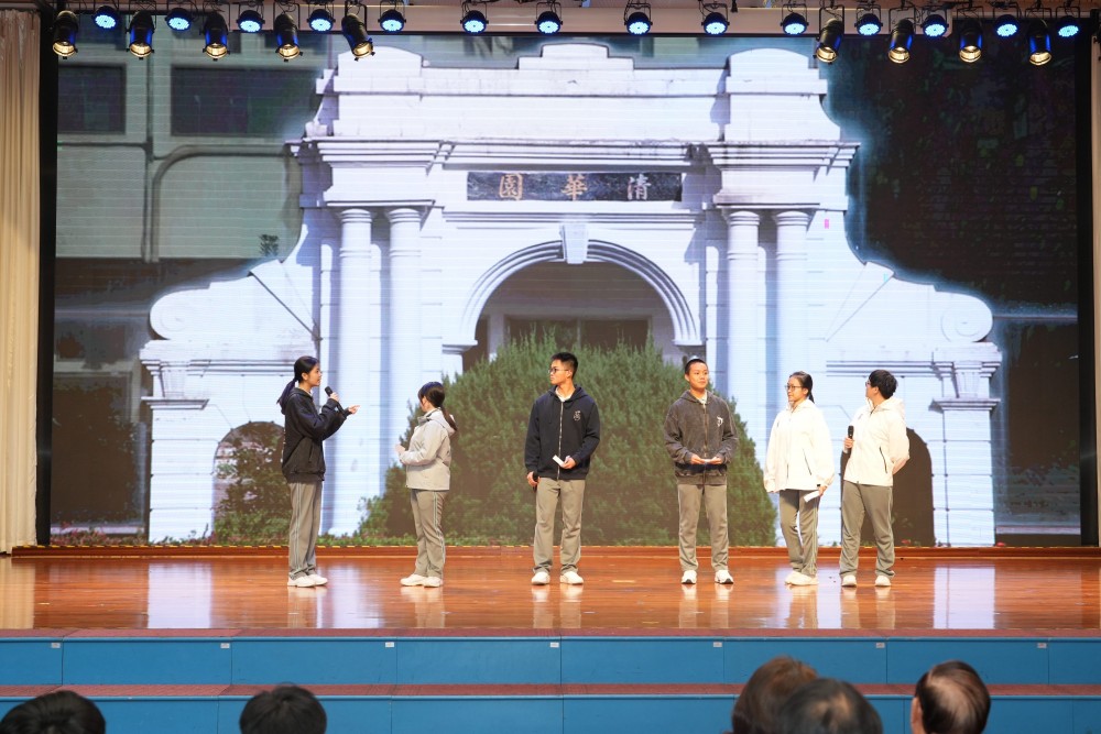 周會上,同學們通過視頻、話劇、服裝展示、歌舞等形式,重現了旅程中的珍貴瞬間:在天安門廣場凝視國旗升起時的莊嚴與自豪;漫步於故宮博物院紅牆黃瓦間,對厚重歷史的感悟;置身圓明園遺址,更讓同學們深刻認識到唯有自信自強,方能守護來之不易的民族復興,創造更光明的未來。此外,劇中也生動展現了同學們前往清華大學參訪的場景,與學長學姐深入交流後,對未來學業規劃的憧憬與激勵。