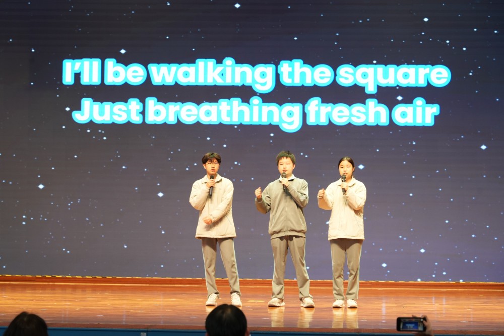 周會伊始,學校對在讀書節系列活動中表現優異的同學進行表彰。隨後,來自不同年級的學生代表真誠分享了他們參與讀書節活動的收穫和感悟。同學們分別以中、英文展示精美的手制書簽與創意十足的故事接龍,暢談閱讀帶來的啟發。才藝展演環節,同學們以英文改編歌曲,歌詞融合澳門本地文化元素,將閱讀與人文情懷生動結合。話劇《范進中舉》與英文話劇《The Wizard of Oz》的先後上演,更將現場氣氛推向高潮。同學們以精湛演技詮釋經典,充分顯示他們不僅深入理解文本,更具備了跨文化演繹與團隊協作的能力。